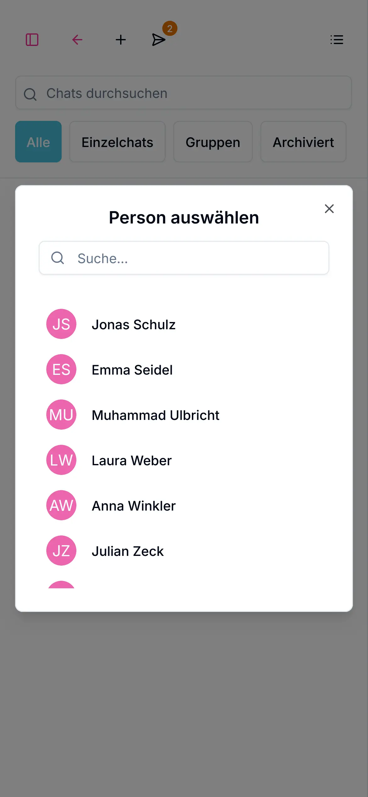 Wählen Sie die Lehrkraft aus, mit der Sie einen Chat starten möchten.