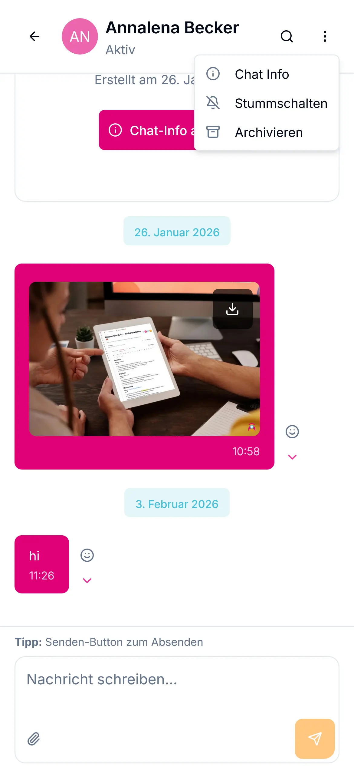 Auf jede Nachricht direkt antworten – die ursprüngliche Nachricht bleibt automatisch verlinkt.