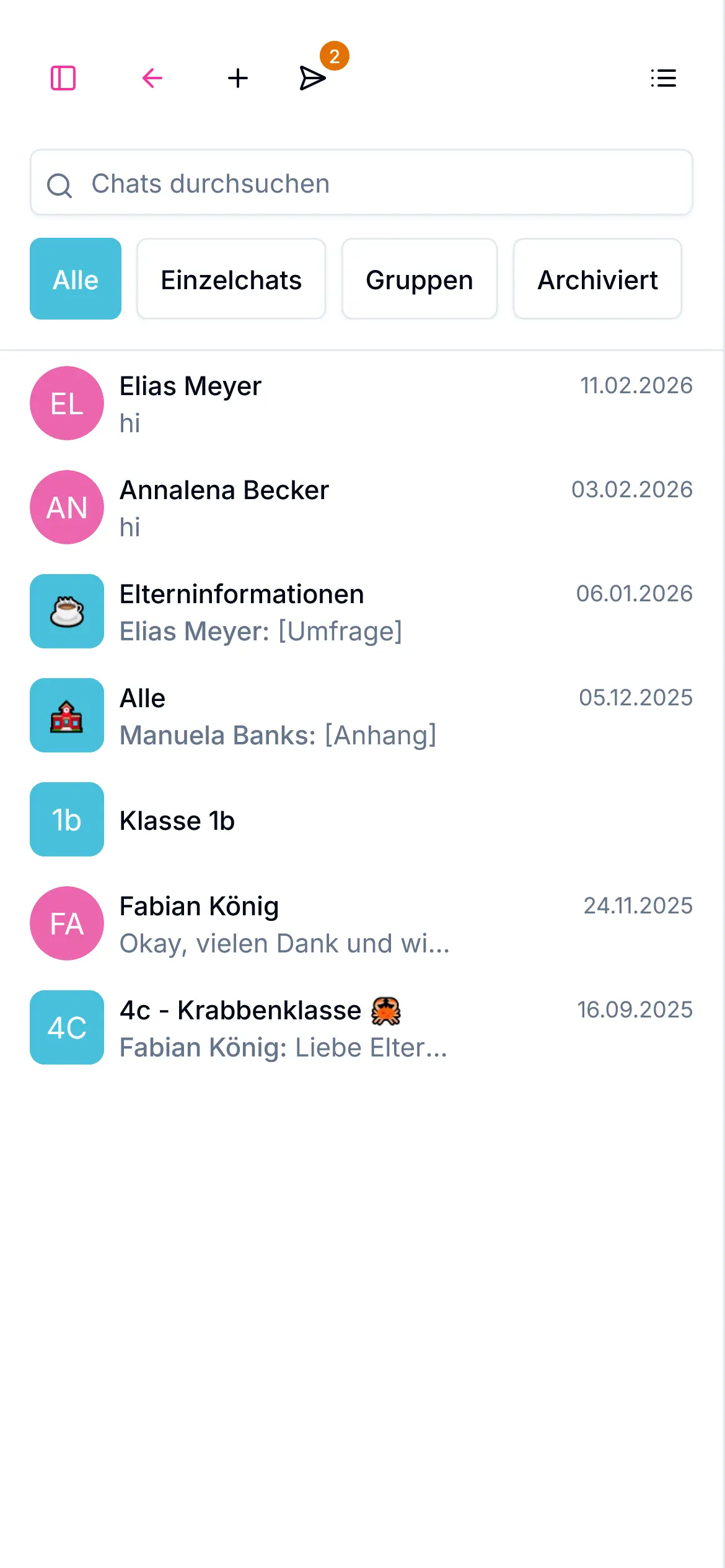 Die Schule legt fest, ob Eltern Nachrichten schreiben können oder nur Mitteilungen erhalten.