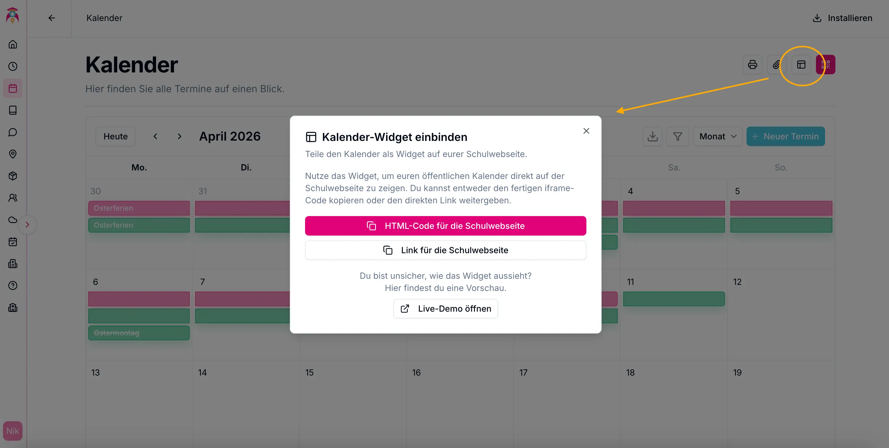 Hier können Sie den Schulkalender als Widget in Ihre Website einbinden.