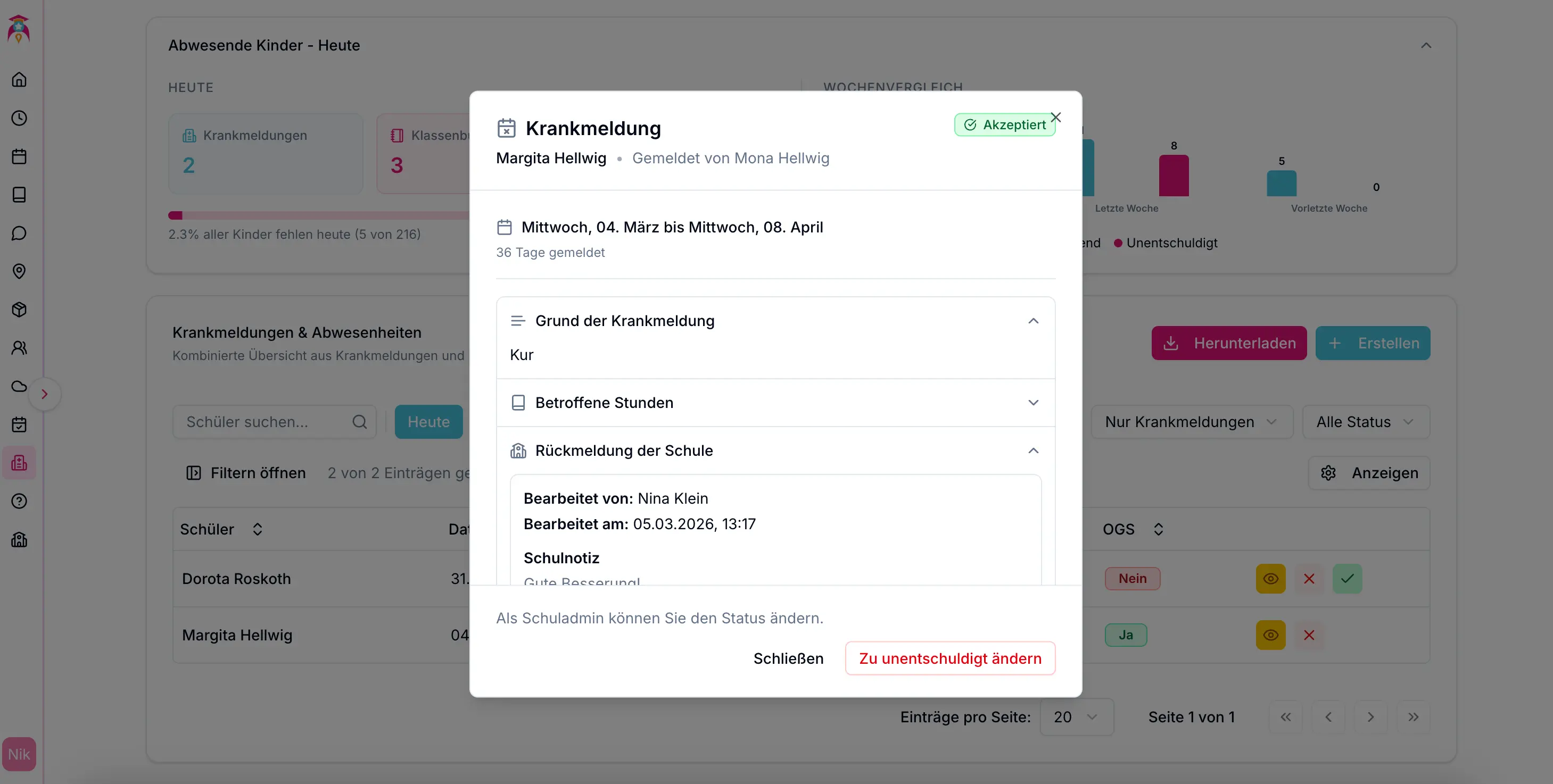 Krankmeldung ansehen - Schulsicht