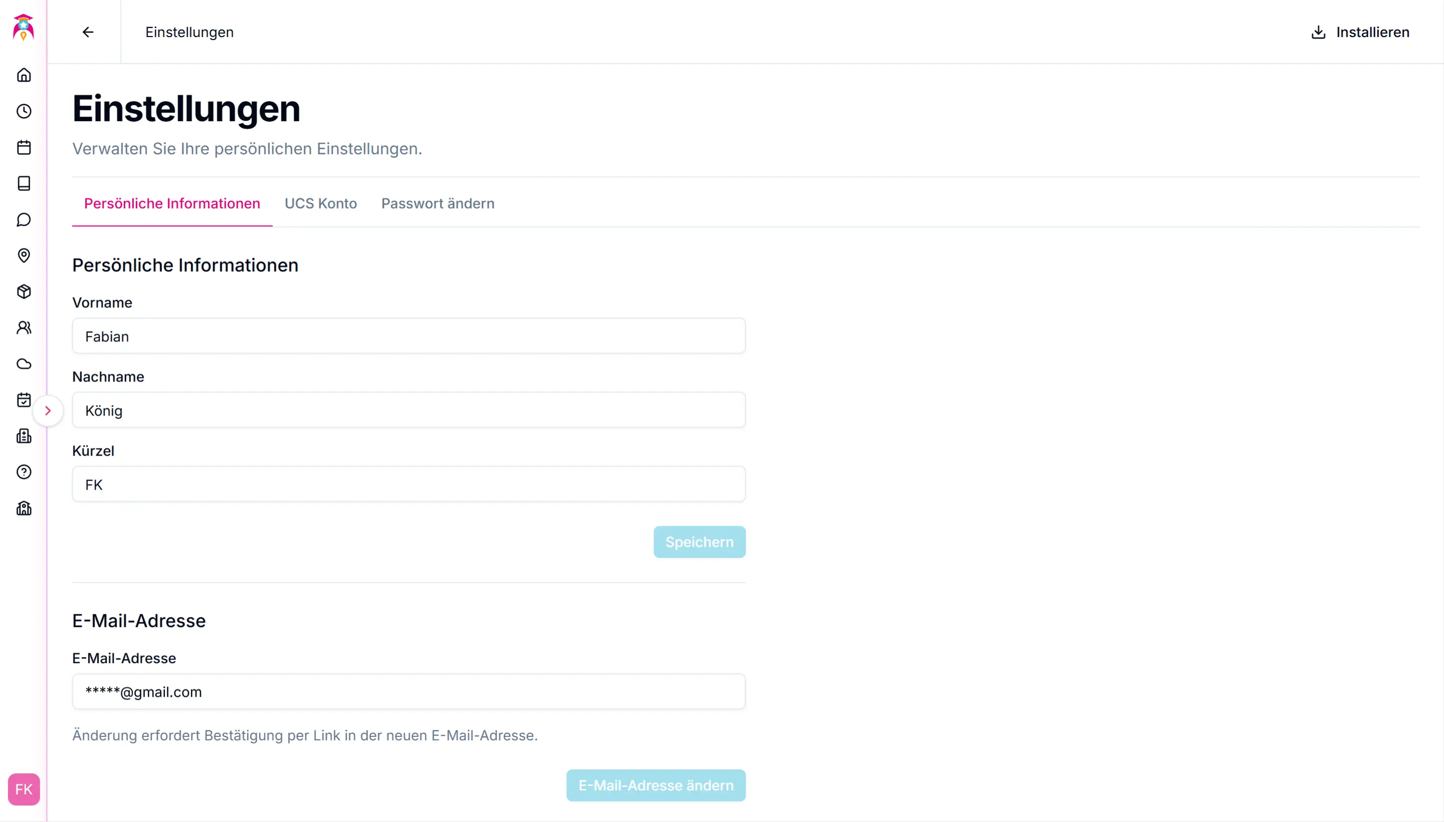 Ändern Sie Ihren Namen, Ihr Kürzel oder Ihre E-Mail-Adresse.