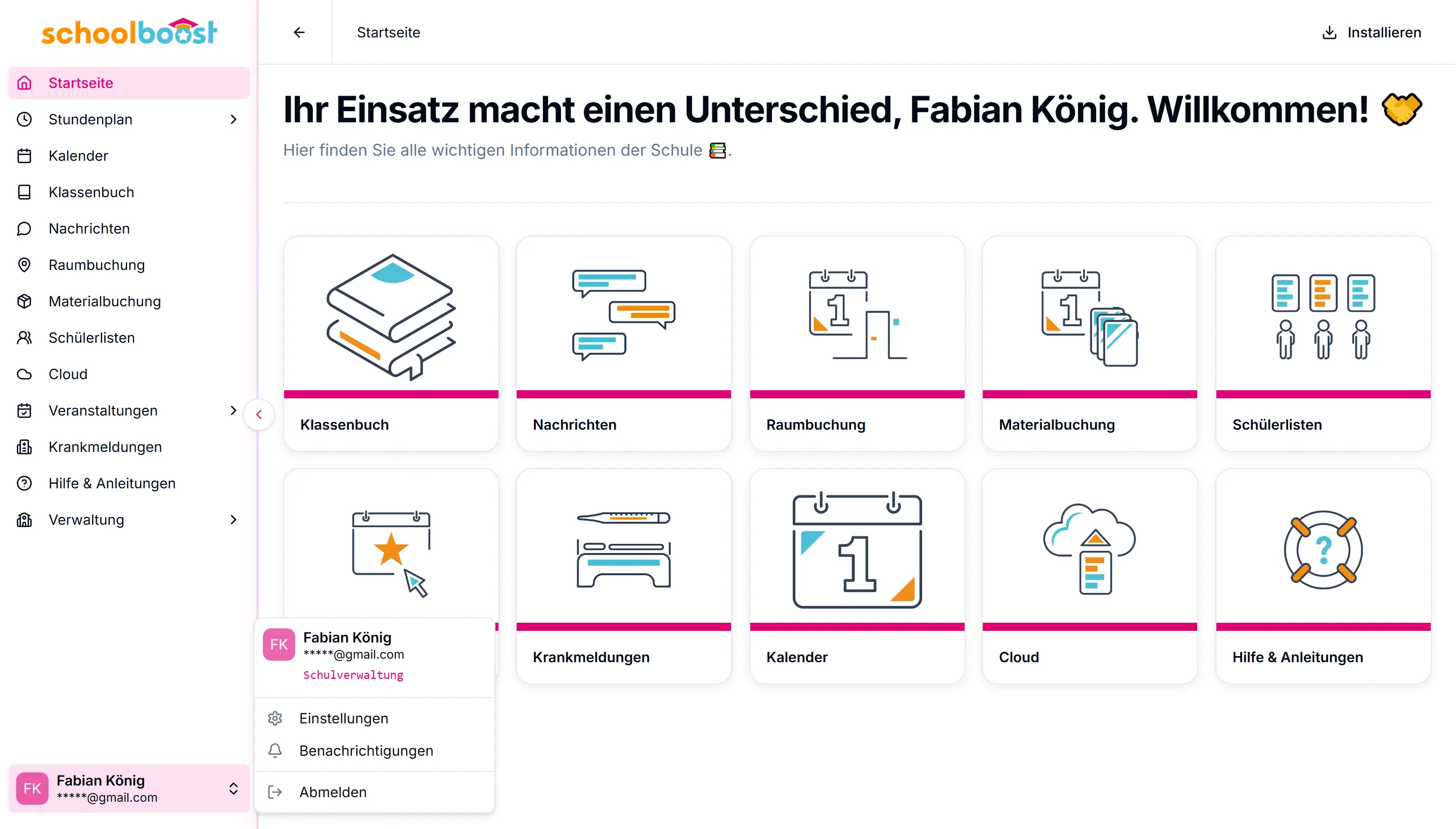 Beginnen Sie auf der Startseite Ihrer schoolboost App.