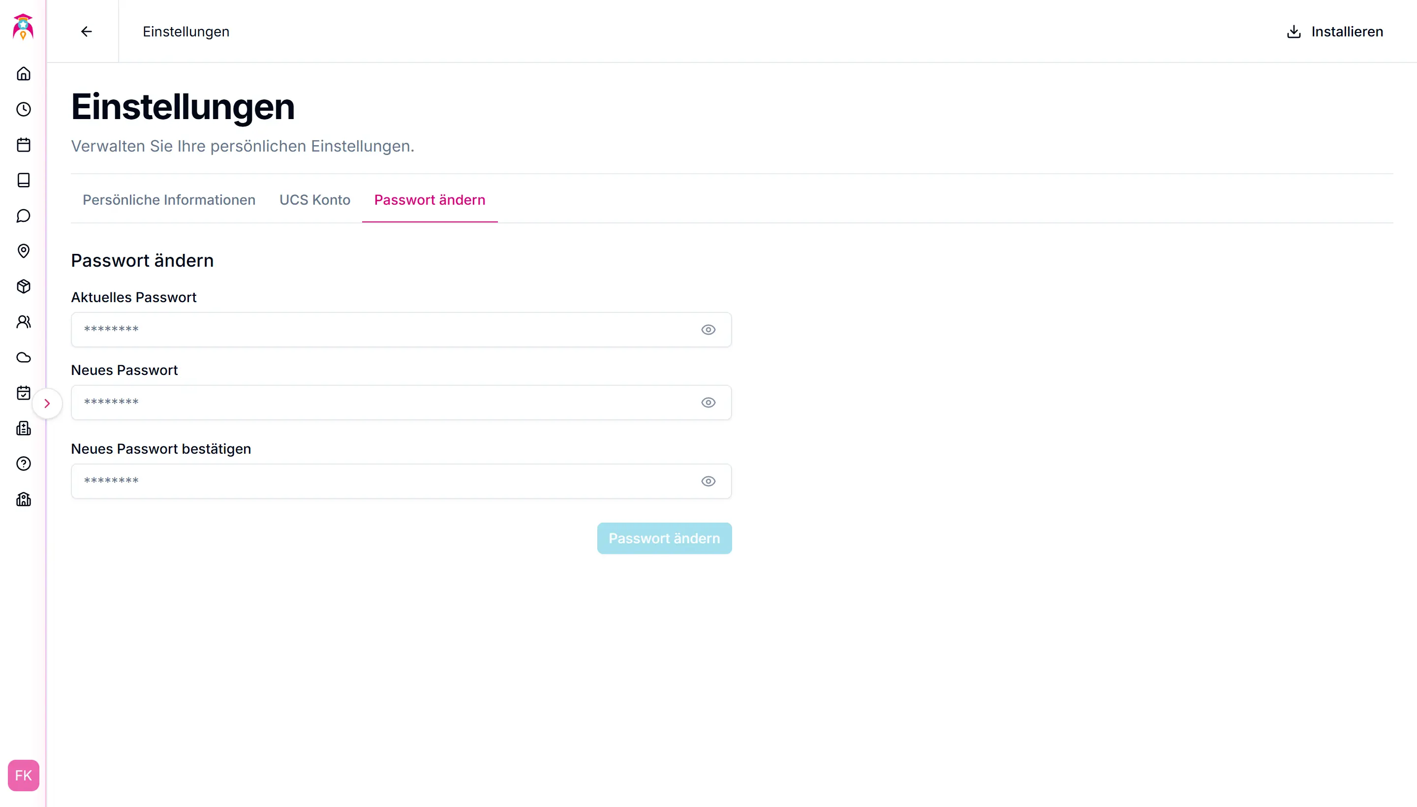 Ändern Sie hier Ihr Passwort, um die Sicherheit Ihres Kontos zu gewährleisten.