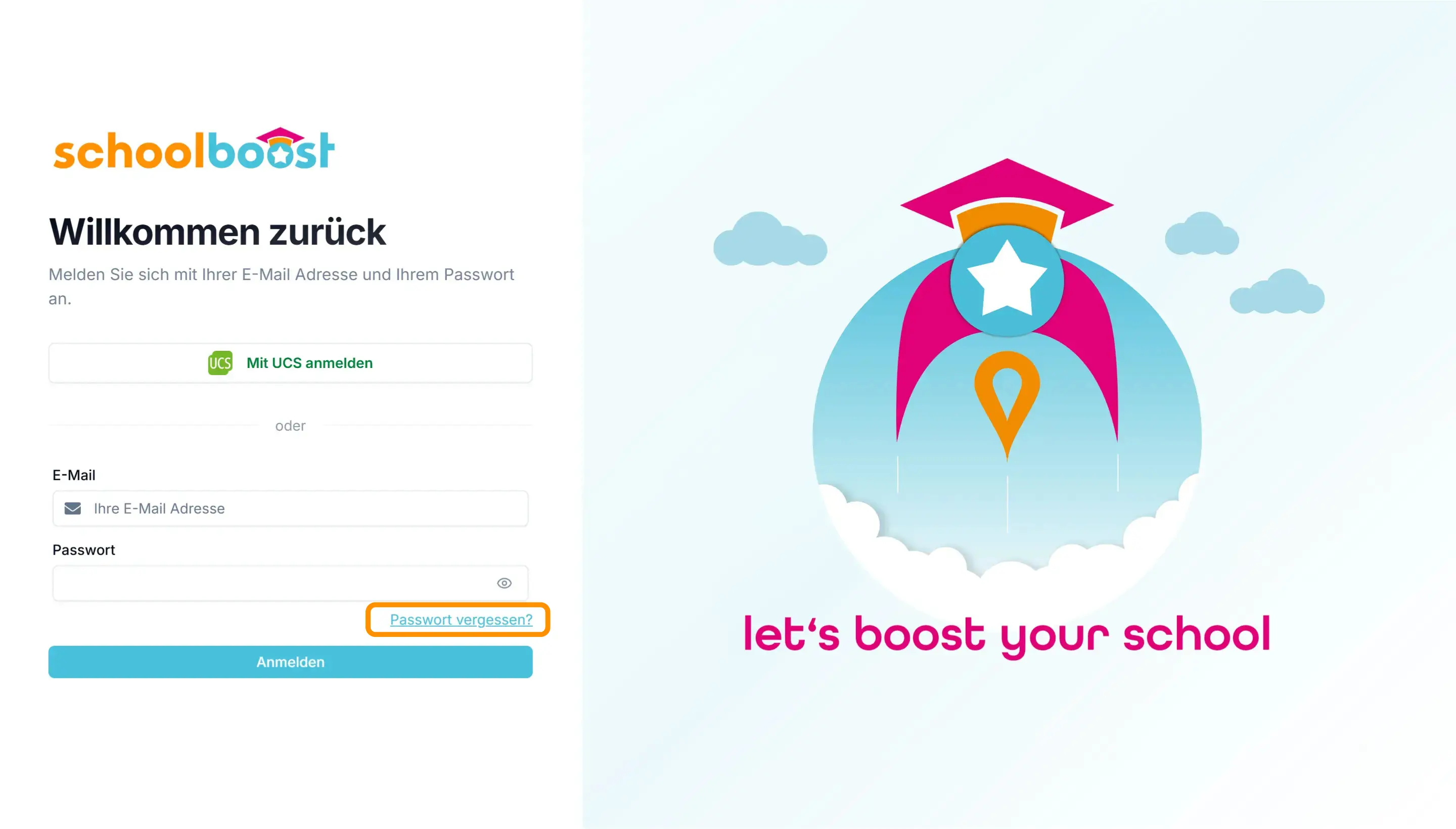 Öffnen die Login-Seite der schoolboost-App und klicken Sie auf "Passwort vergessen?".