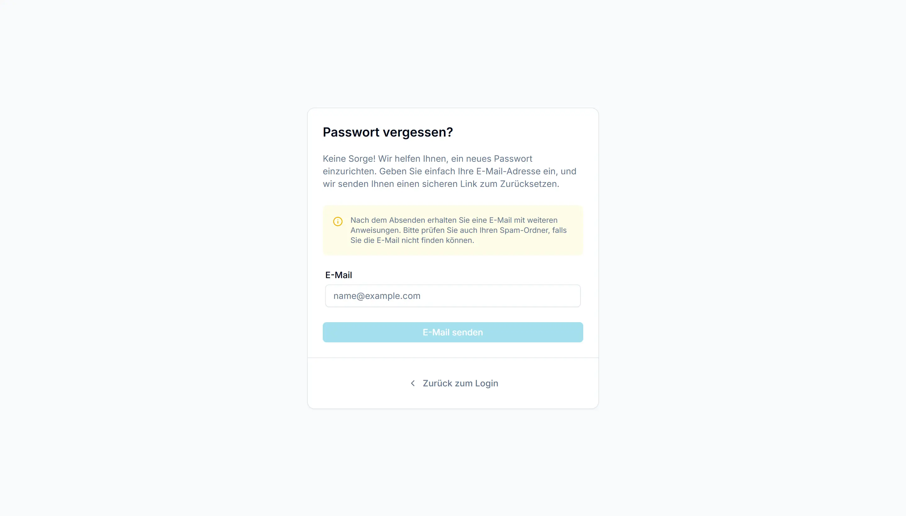 Durch den Klick auf den "E-Mail senden"-Button wird automatisch eine E-Mail mit einem Link zum Erstellen eines neuen Passworts versendet.