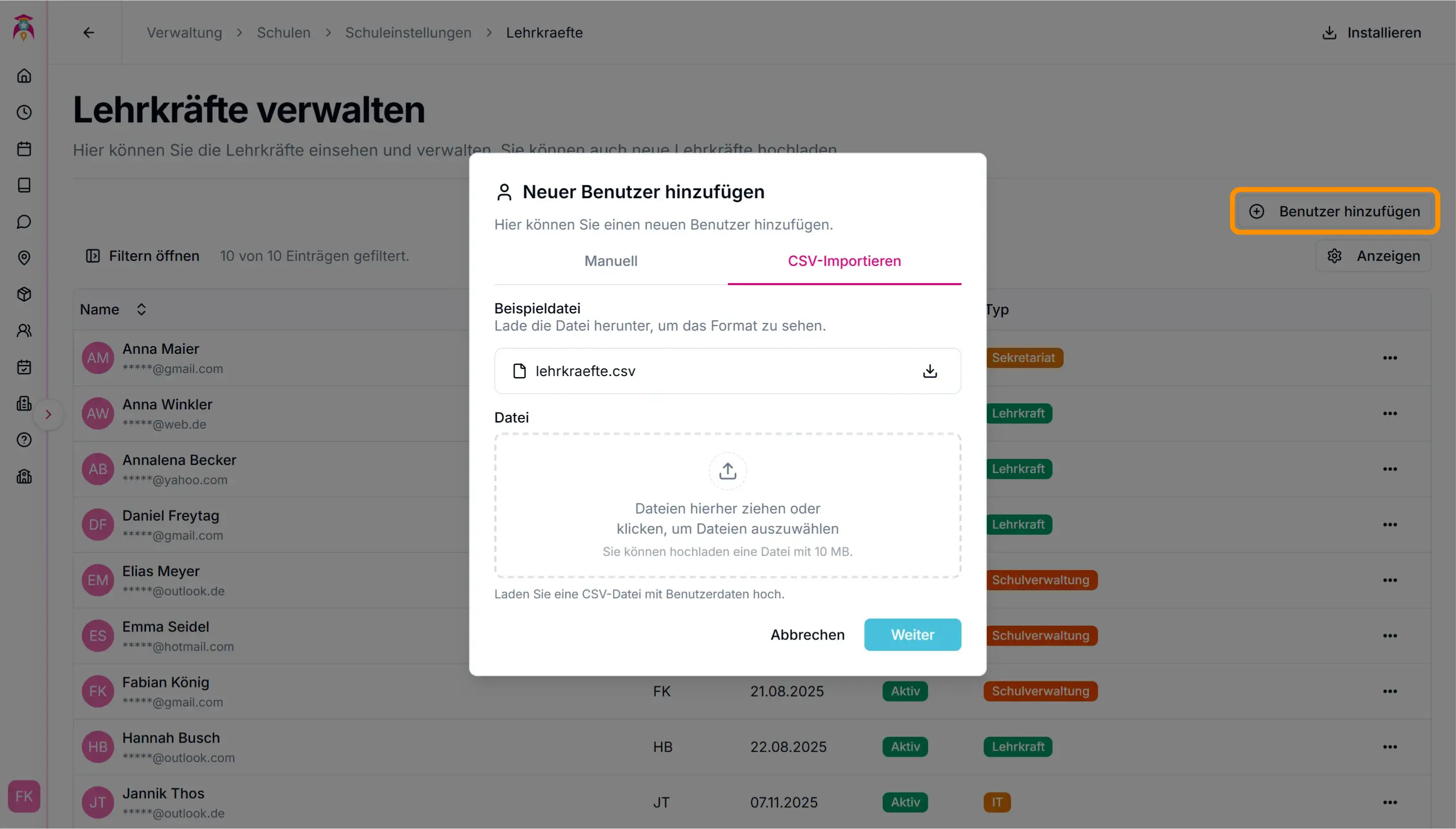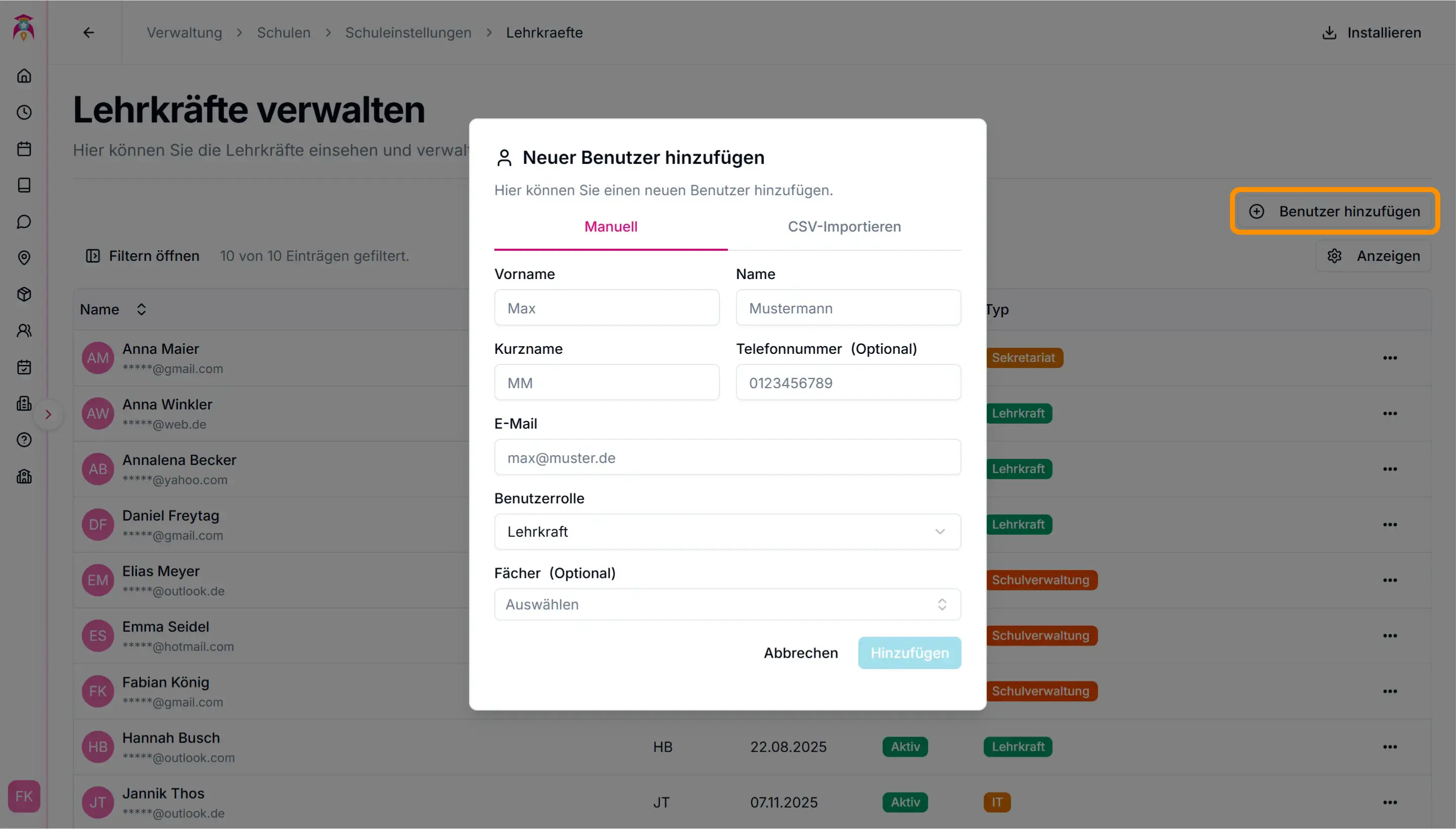 Lehrkräfte hinzufügen