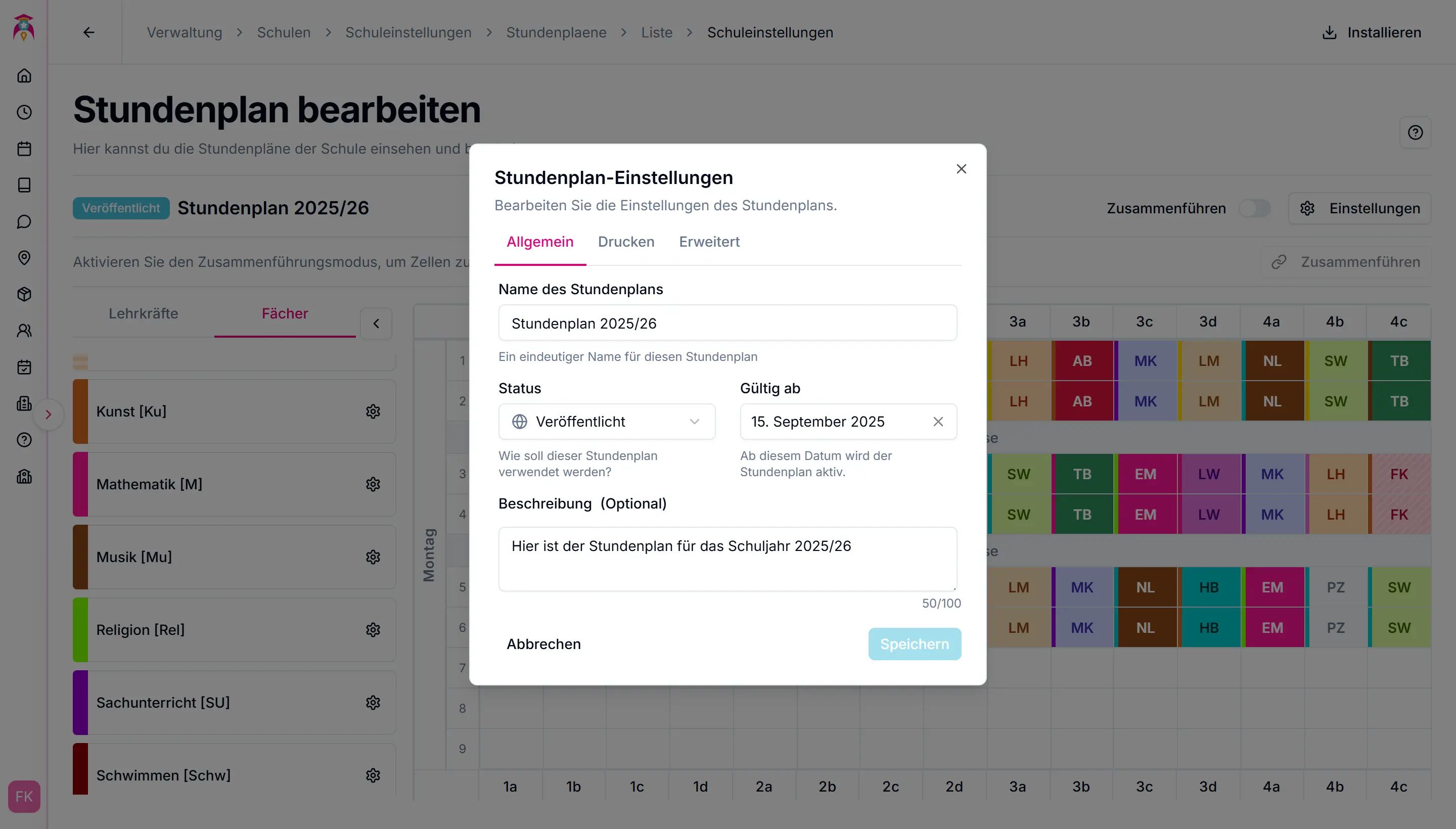 - Stundenplan erstellen und bearbeiten