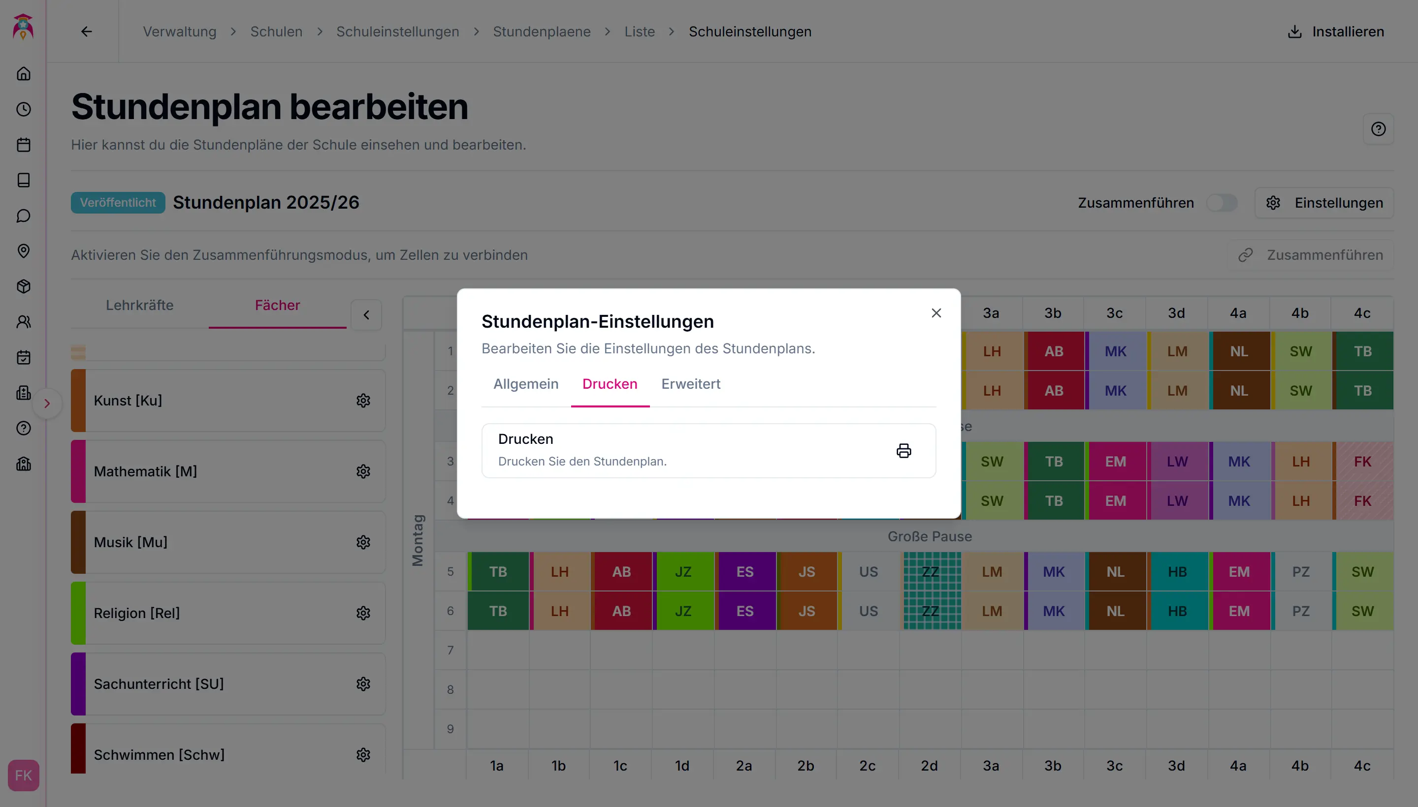 - Stundenplan drucken