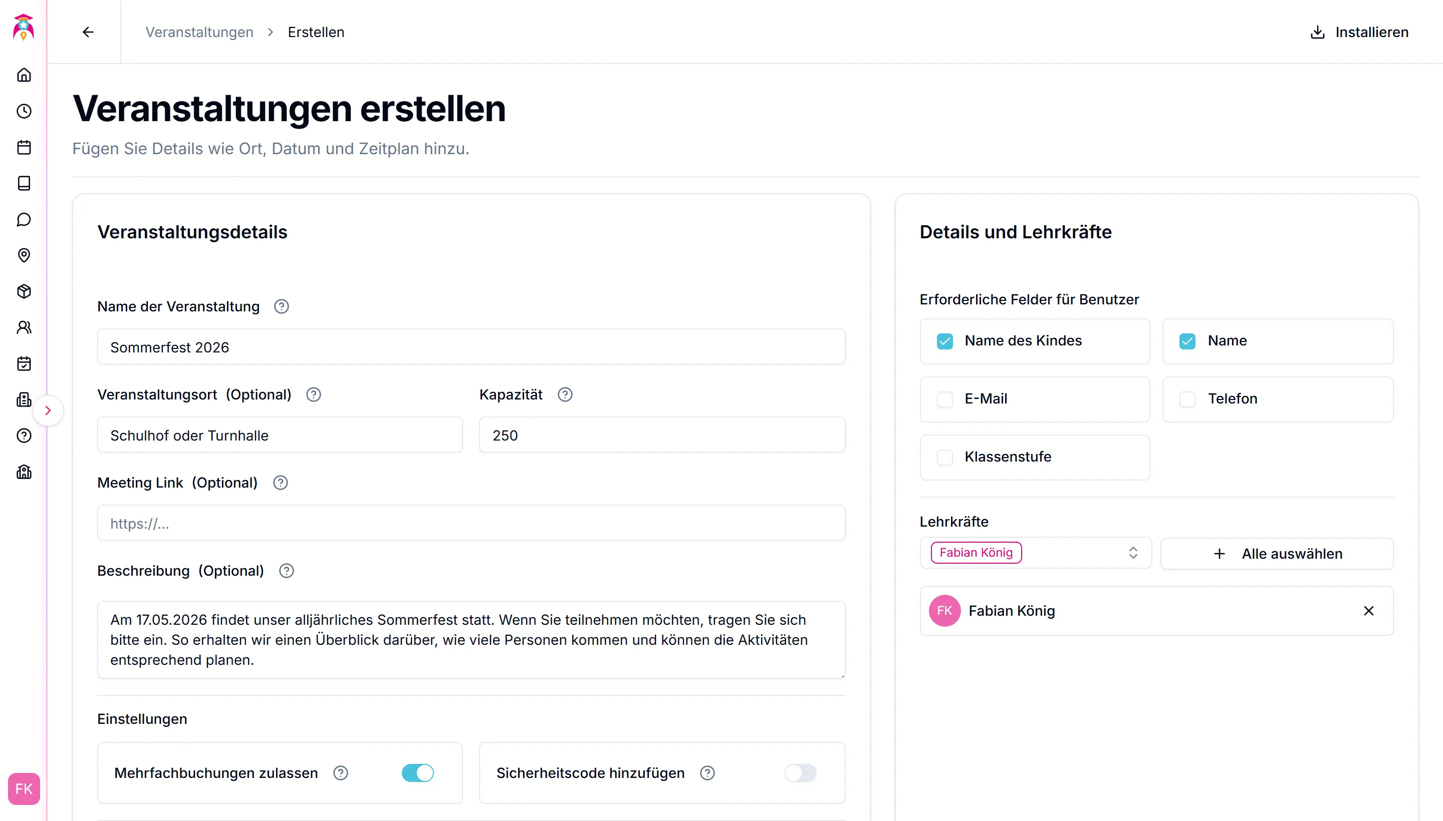 Veranstaltung erstellen
