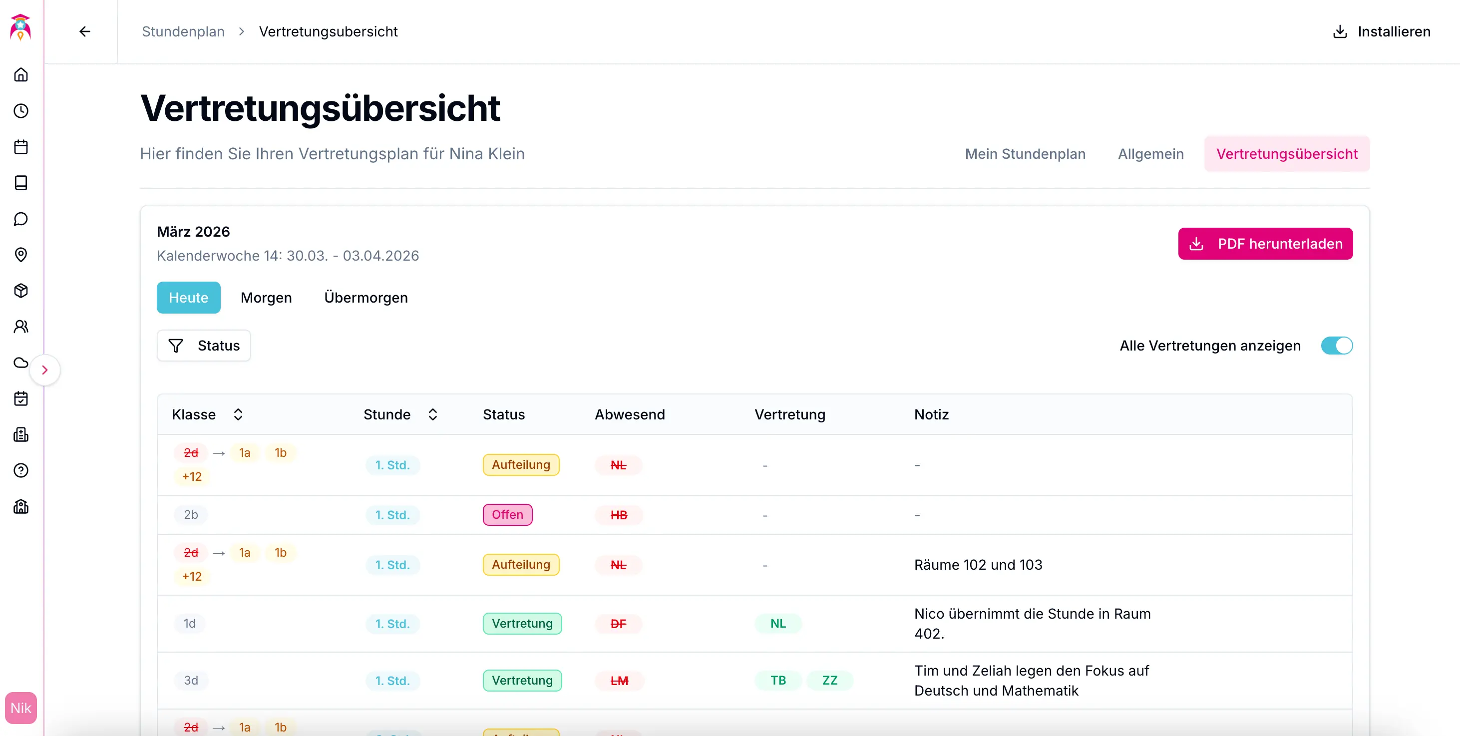 Der Vertretungsplan ist das zentrale Tool für Vertretungen und Ausfälle. Er zeigt nicht nur die geplanten Vertretungen, sondern auch alle Änderungen im Stundenplan.